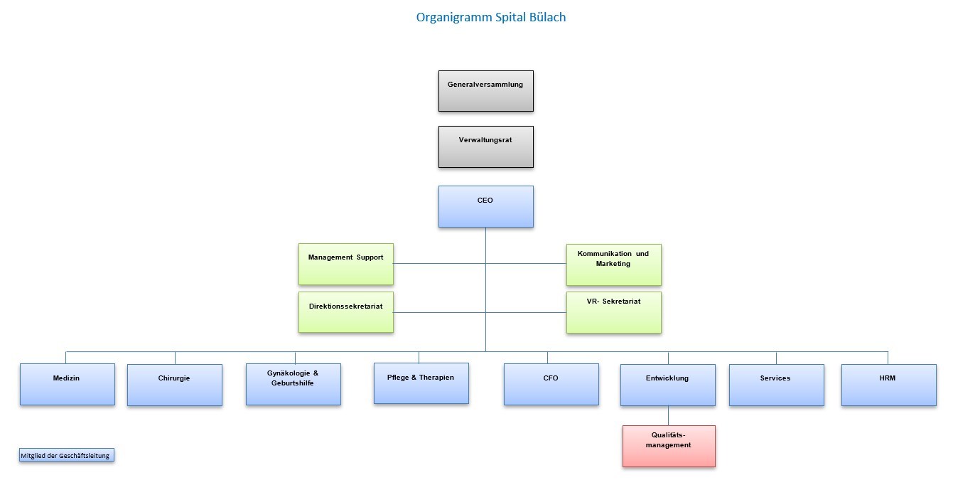 | Halbjährliches Reporting der wichtigsten Qualitätskennzahlen an die Geschäftsleitung | Ganzes Spital | Laufend | ||||||||||